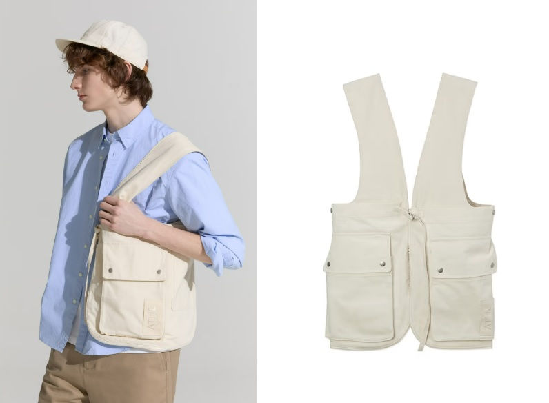 피싱웨어(낚시웨어)에서 영감을 얻은 워크웨어 백도 있다. 아떼 바네사브루노 액세서리의 남성 라인 ‘아떼 가르송’은 조끼와 숄더, 크로스 세가지 방식으로 완전히 변형이 가능하게끔 디자인돼 복종의 경계를 뛰어 넘는 ‘워크웨어백’을 출시했다. 높은 활용도와 더불어 피싱웨어 트렌드에 힘입어 독창적인 패션 아이템으로 각광받고 있다.