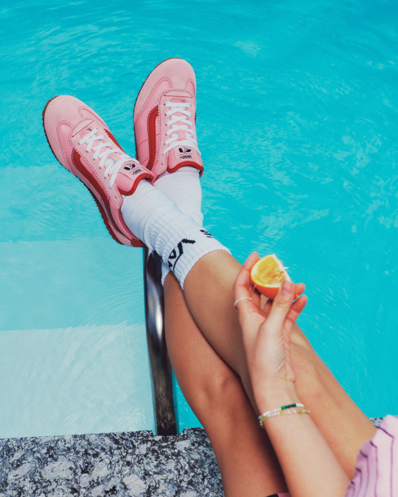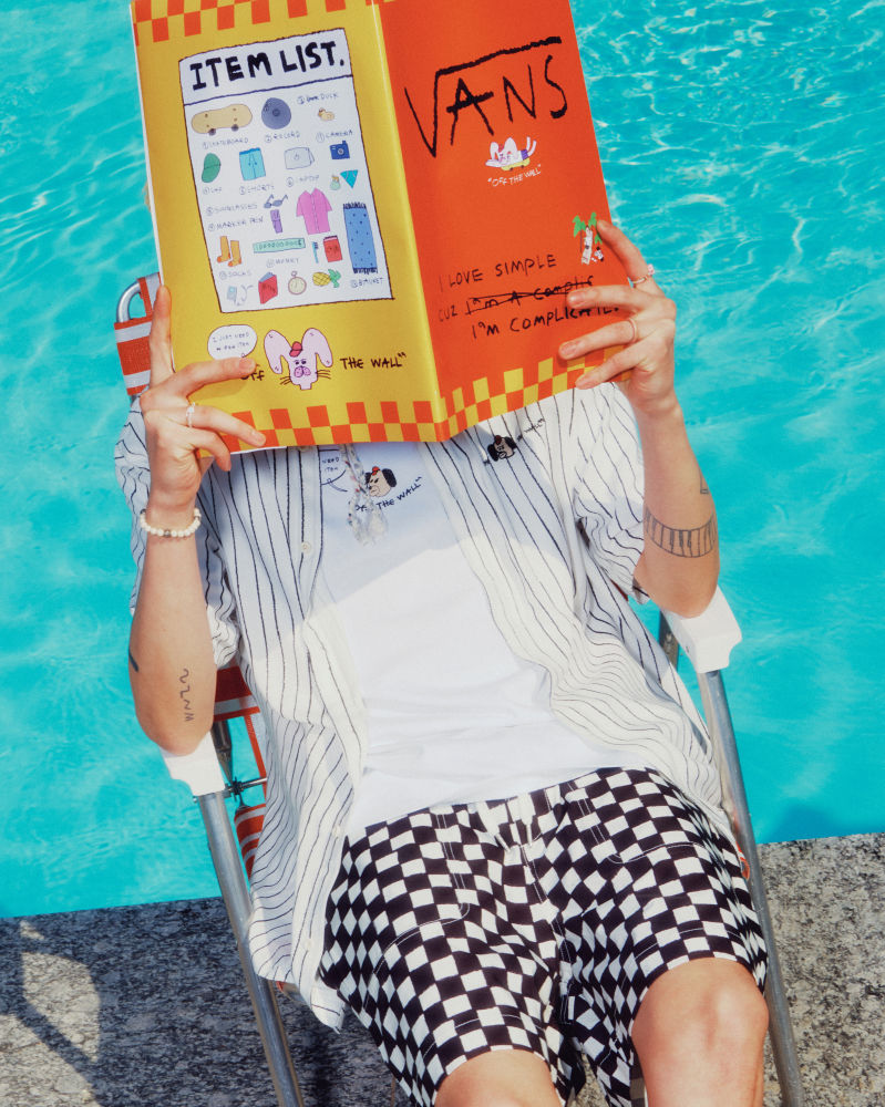 아웃솔에는 “I love simple cuz I am complicated”라는 슬로건이 담겼고, 인솔에는 그녀의 여행 아이템 리스트가 프린트되어 있다. 그래픽 티셔츠, 반바지, 가방 등으로 구성된 어패럴 세트도 함께 출시되며, 대담한 패턴의 충돌과 DIY 정신은 반스 특유의 자유롭고 생기 넘치는 라이프스타일을 반영한다.