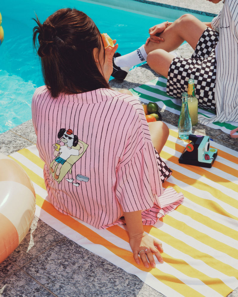 서울을 기반으로 활동하는 아티스트 리루(Riroo)는 그녀의 유쾌하고 생동감 넘치는 디자인을 반스 아티스트 컬렉션에 선보인다. 휴가의 자유로운 분위기에서 영감을 받은 리루의 작업은 여행이 주는 기쁨과 그로부터 비롯되는 단순함을 포착한다.