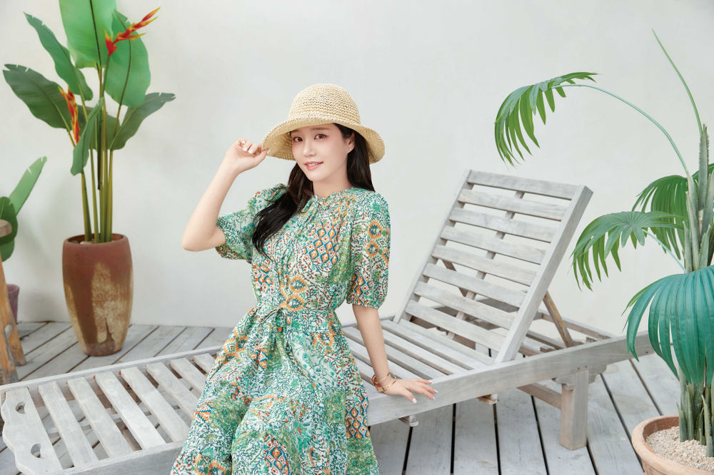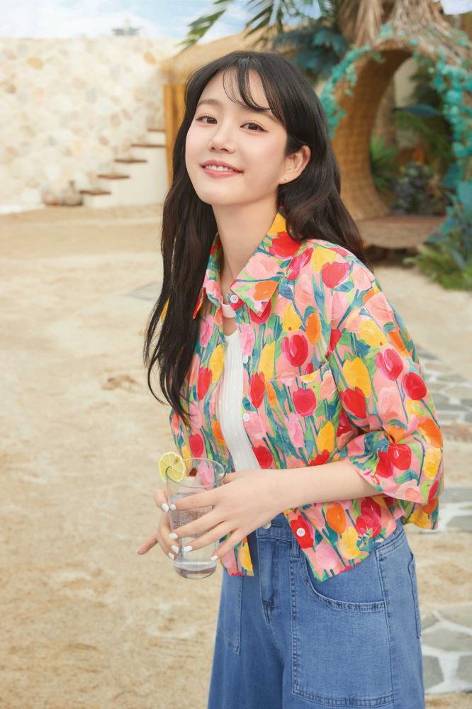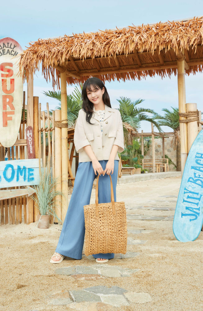또 다른 화보에서는 라이트 베이지 컬러의 린넨 자켓에 플로럴 패턴 블라우스와 루즈핏 와이드 팬츠를 매치해 휴가철 여행지에서도 입기 좋은 스타일리시한 캐주얼룩을 완성했으며, 비비드한 컬러의 플라워 프린팅 블라우스에 초커넥 반팔니트, 데님 와이드 팬츠를 매치하여 경쾌하고 산뜻한 무드의 스타일링을 선보였다.