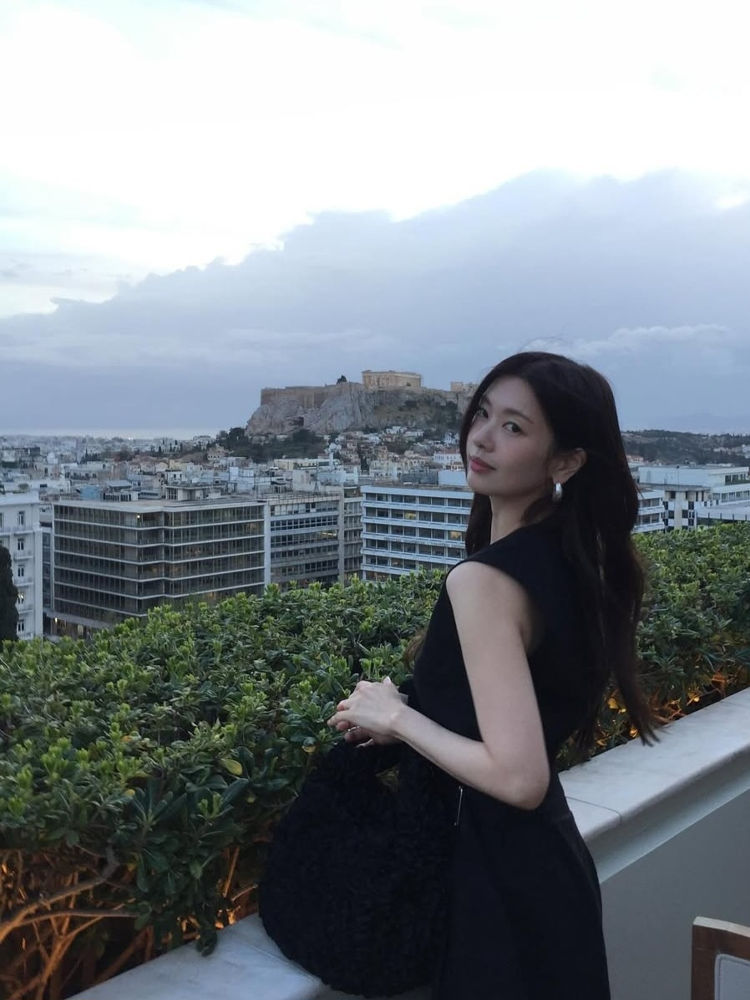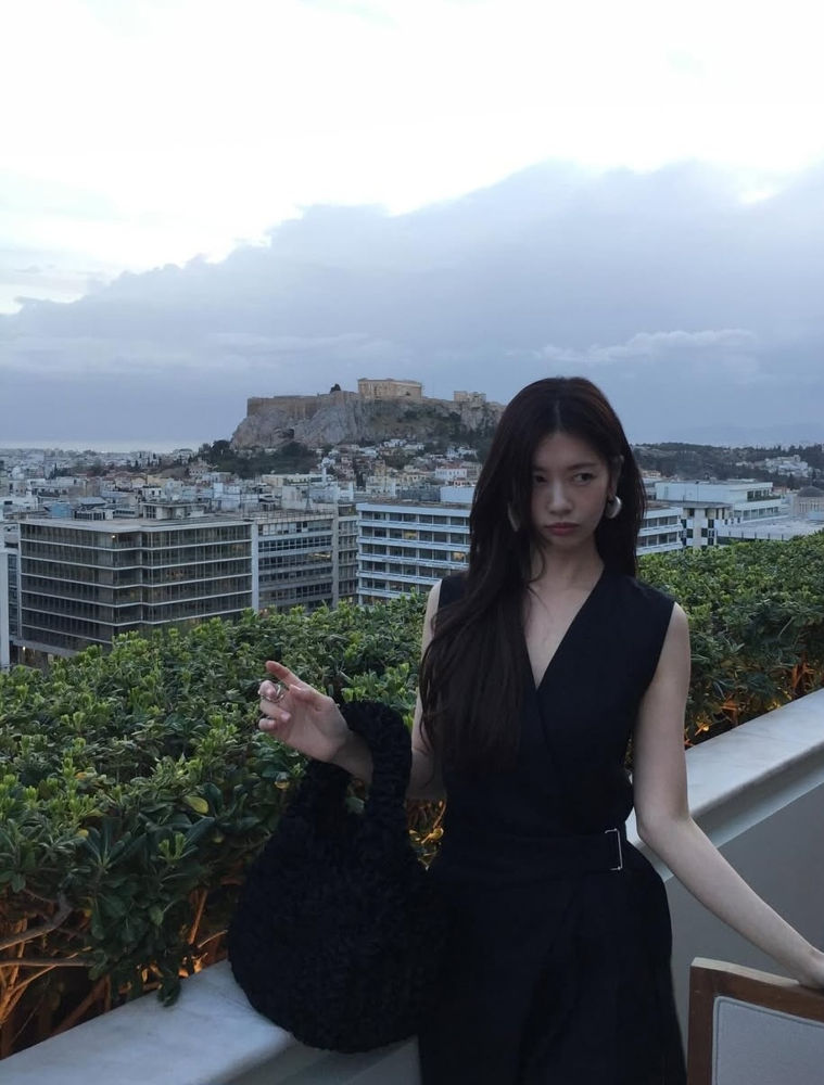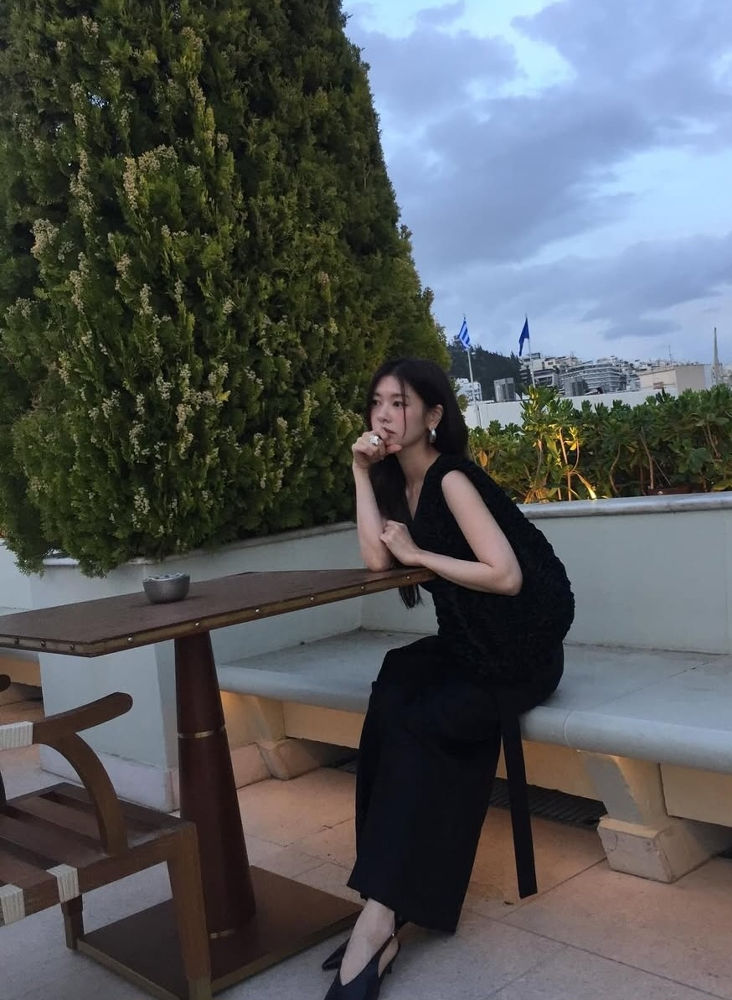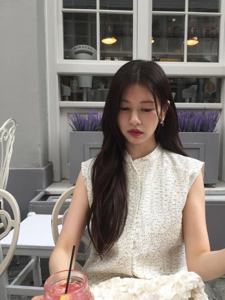 우아한 느낌의 올블랙 룩은 심플한 디자인의 텍스처가 살아 있는 슬리브리스 탑이다. 정소민은 여기에 블랙 와이드 팬츠를 매치해 편안하면서도 세련된 무드를 완성했다.
