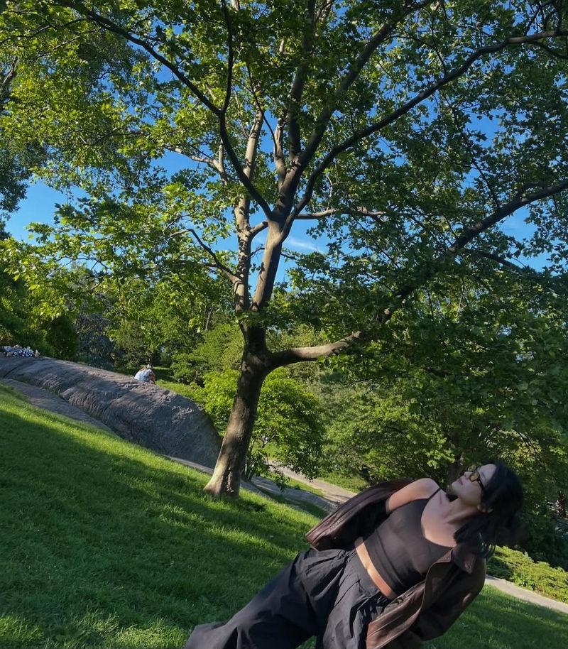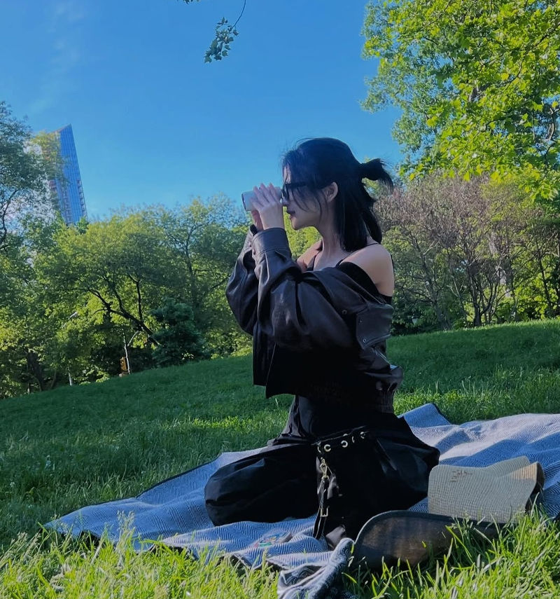 공원에서 휴식을 즐기는 배우 김태리는 심플한 블랙 캐미솔 탑으로 스타일리시한 여름룩을 완성해 시선을 사로잡았다.
