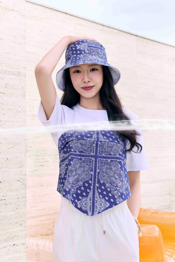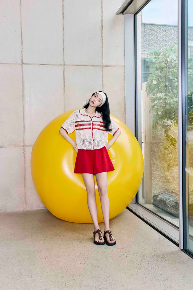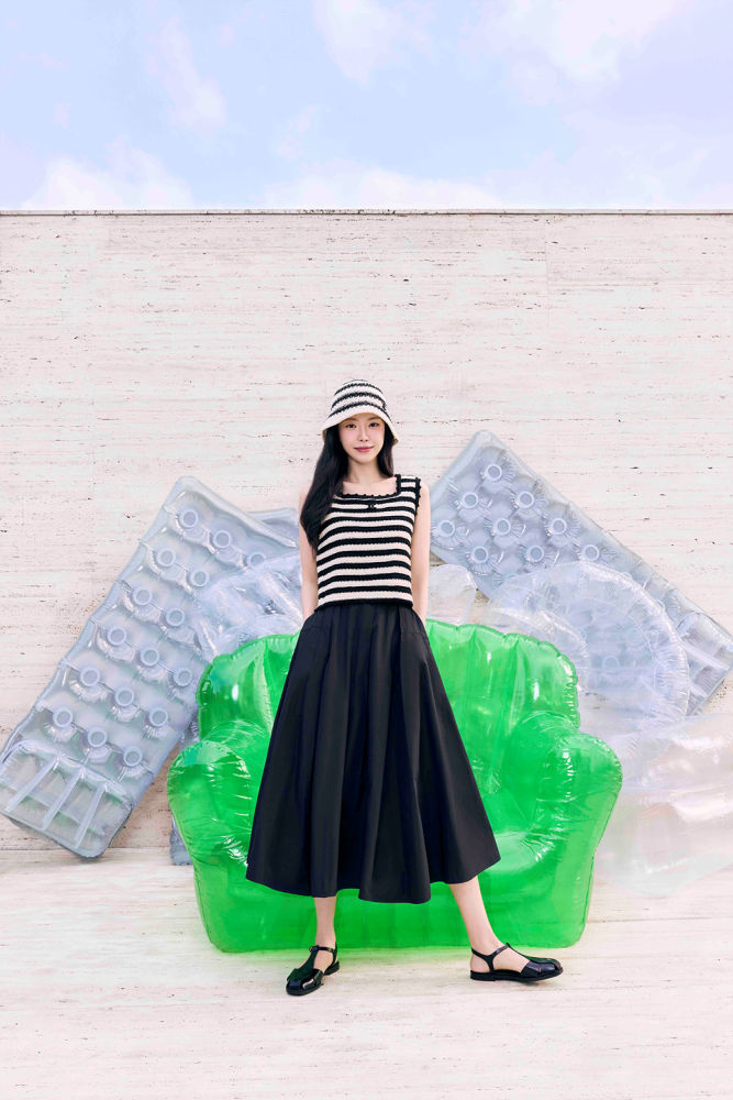 이 외에도 레드 포인트 니트 가디건과 밴딩 쇼츠를 활용해 스포티한 일상룩을, 블랙 앤 화이트의 스트라이프 탑과 블랙스커트, 버킷햇을 매치해 페미닌한 썸머룩을 완성하는가 하면, 브라운 컬러의 슬리브리스 탑과 슬랙스를 셋업으로 매치해 트렌디하고 시크한룩을 제안했다.