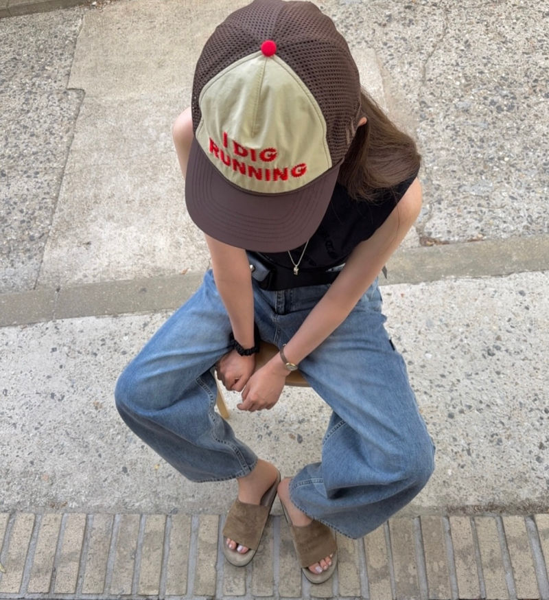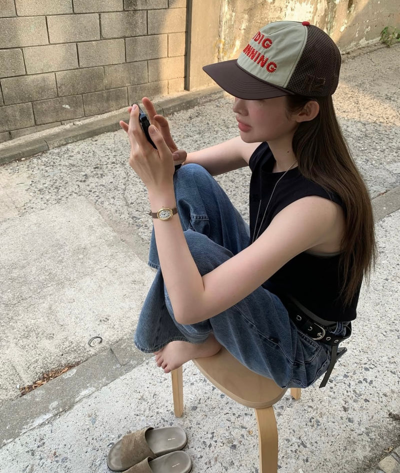 여기에 볼 캡과 심플한 실버 액세서리, 오픈 토 슬리퍼를 더해 데일리하면서도 힙한 무드를 강조했다.