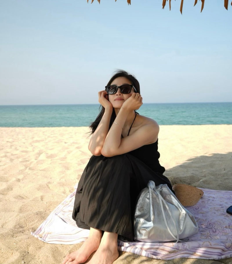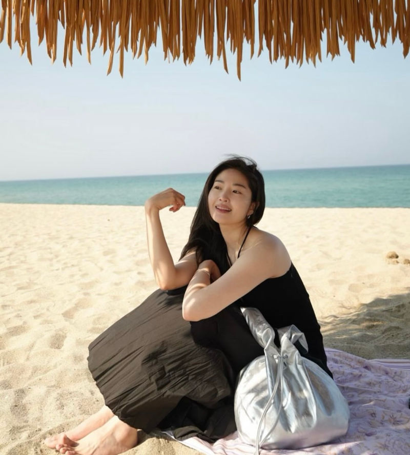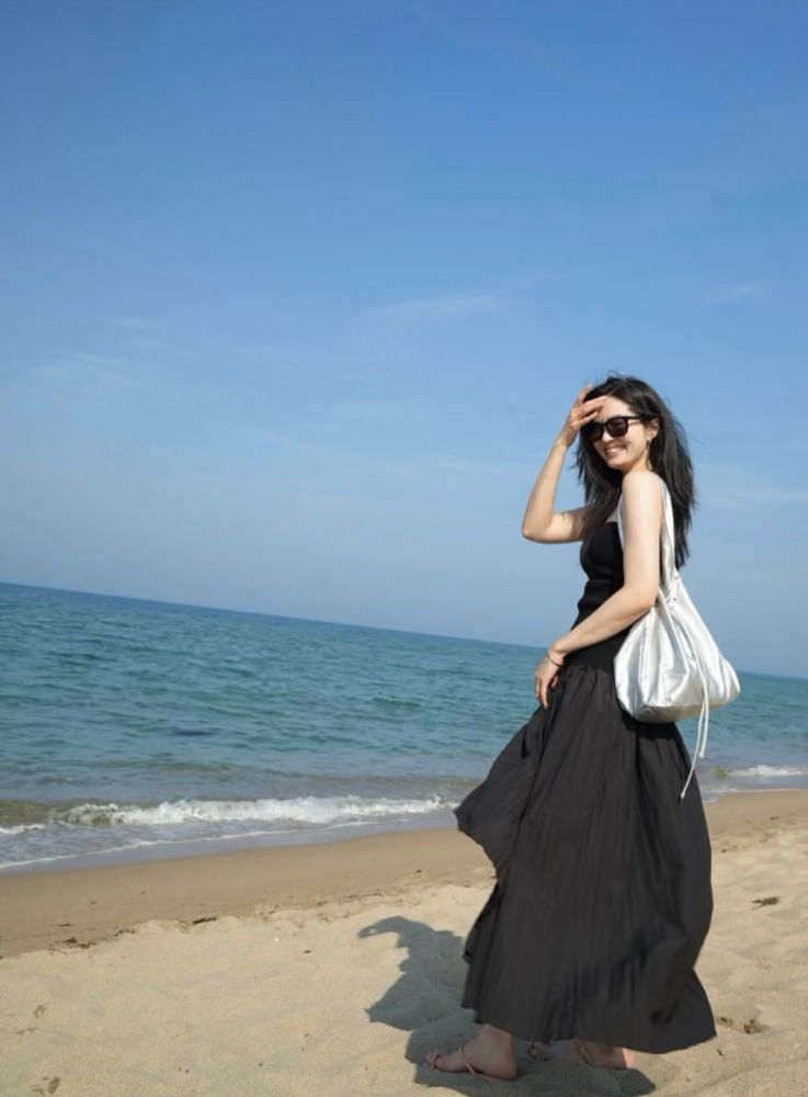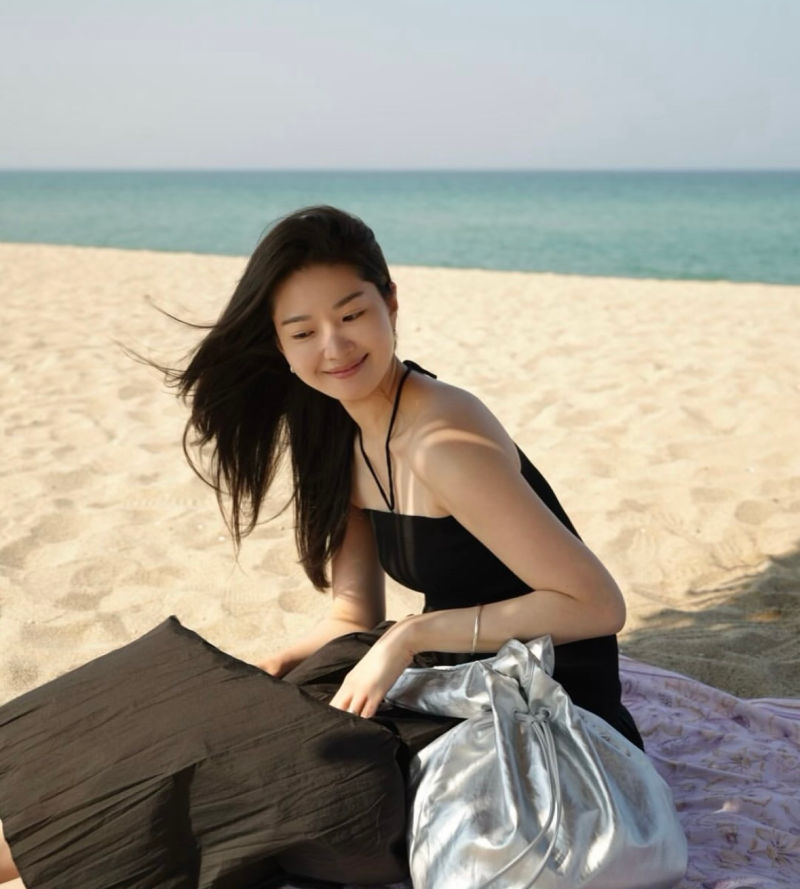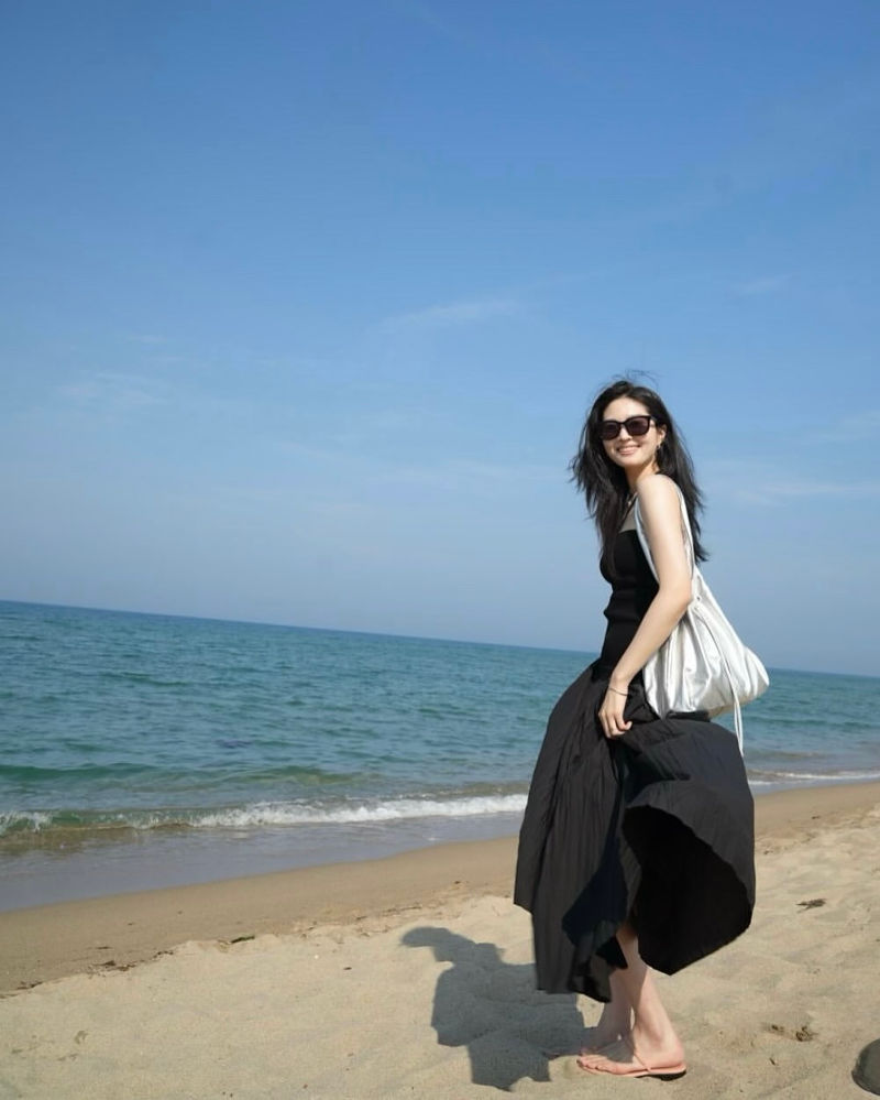 류이서가 선보인 해변에서의 올 블랙 룩은 블랙의 매력을 시원하게 잘 풀어낸 예로, 여름 블랙 스타일링의 모범답안과도 같은 룩이다.