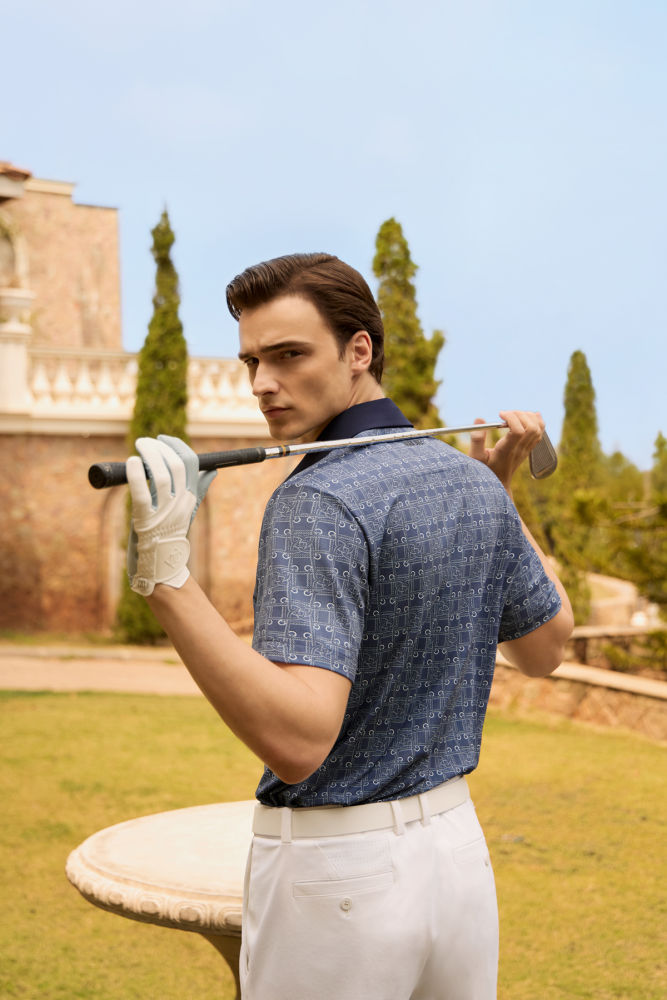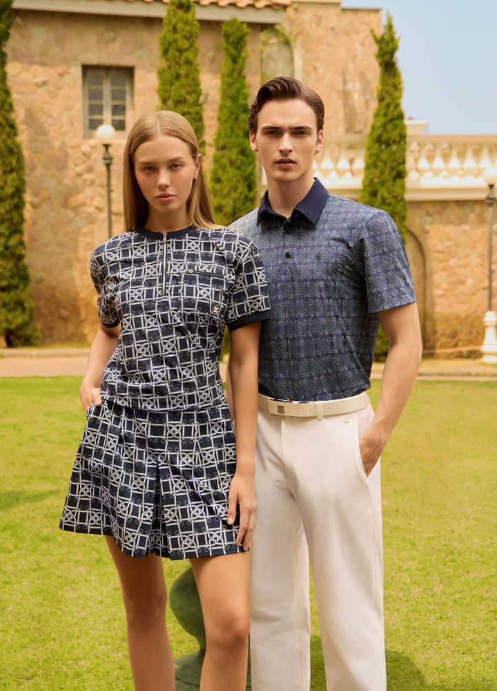 남성용 대표 아이템은 ‘로프 패턴 반팔 카라 티셔츠’다. 깔끔한 네이비 색상 위에 정교하게 패턴을 이룬 밧줄 그래픽이 화려한 분위기를 드러내는 제품으로, 자신감 넘치는 필드룩을 연출할 수 있다. 또, 가볍고 시원한 촉감의 기능성 메쉬를 사용해 장시간 착용 시에도 쾌적함을 유지해 준다.