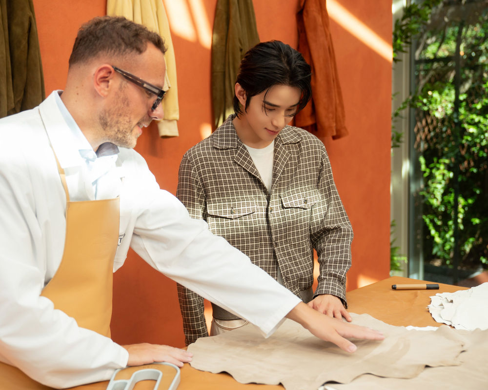 앰버서더 정우는 크리에이티브 디렉터 마테오 탐부리니(Matteo Tamburini)가 디자인하여 이번 프레젠테이션을 통해 처음 선보인 소프트한 체크 패턴의 크롭 재킷과 아이보리 데님 팬츠에 벨트로 구성된 정제된 감각의 컨템포러리 룩을 특별히 먼저 착용하여 절제된 고급스러움과 현대적인 세련미가 조화를 이루는 완벽한 아웃핏을 선보였다.