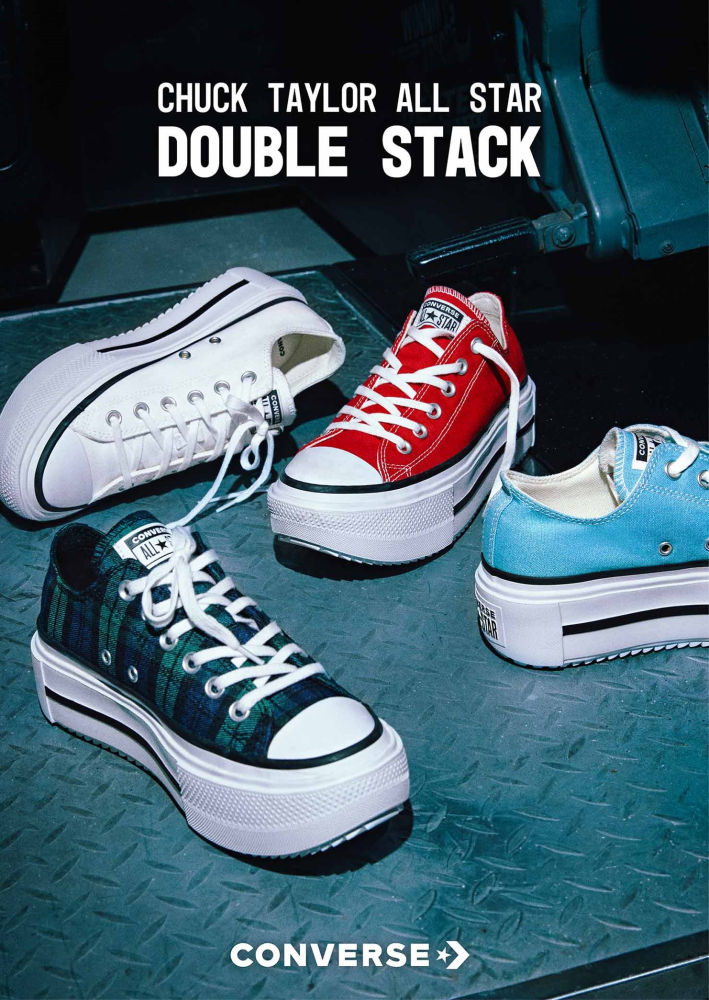화보 속 하츠투하츠가 착용한 ‘척테일러 올스타 더블 스택(CHUCK TAYLOR ALL STAR DOUBLE STACK)’은 클래식 척의 감성을 담은 캔버스 어퍼와 놀라울 만큼 가벼운 더블 스택 플랫폼 디자인이 특징이다. 여기에 세련된 컬러감이 더해져 어떤 스타일에도 자연스럽게 어우러진다.