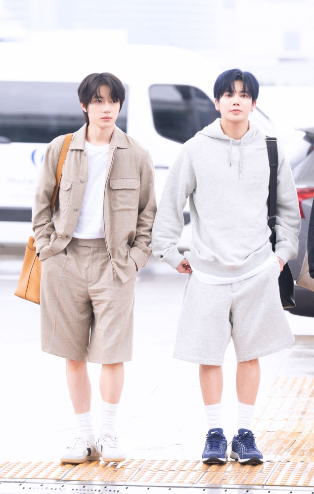연준은 블랙 컬러의 져지 및 쇼츠와 함께 화이트 컬러의 디올 오블리크 스니커즈를 착용, 태현은 그레이 컬러의 후디와 쇼츠, 그리고 B35 NXXT 스니커즈로 연준과 태현 모두 스포티한 매력을 뽐냈다. 여기에 깔끔한 라인의 DIOR PRIVE 백을 연준과 태현이 같이 매치한 점이 눈에 띈다.