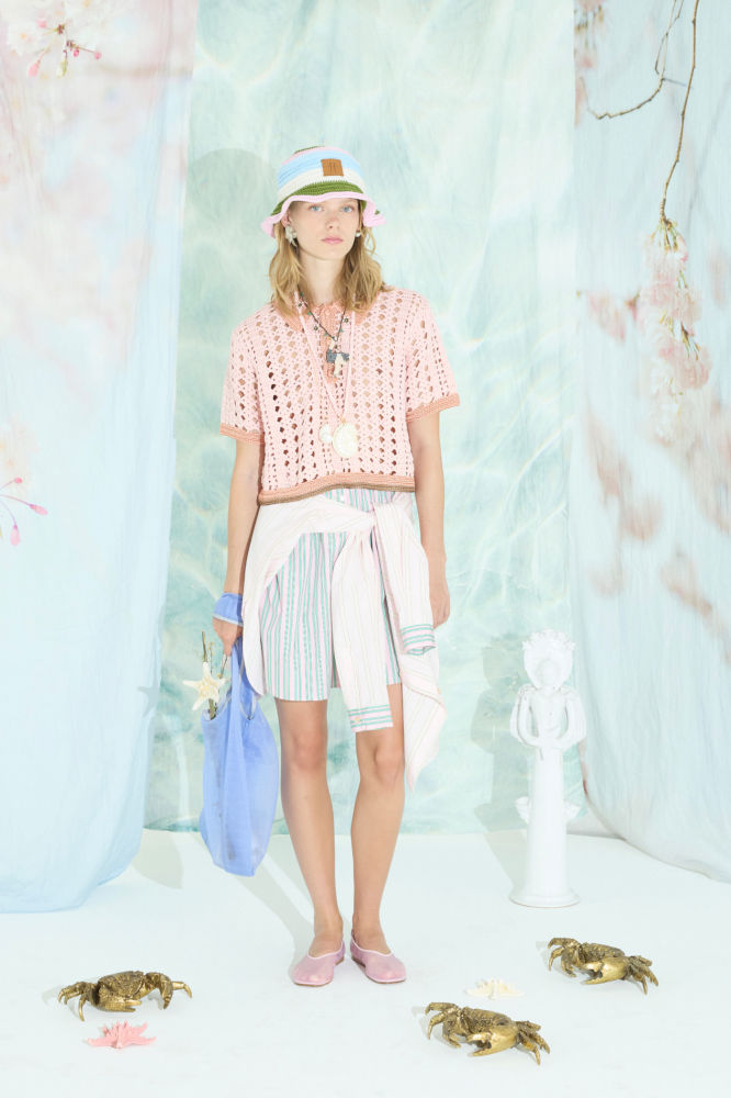 주요 스타일로는 자연의 색채를 담은 니트 가디건과 가벼운 스트라이프 포플린 쇼츠, 테일러드 베스트와 믹스 매치가 돋보이는 드레이프 스커트, 볼드한 조직감과 파스텔 핑크톤의 조화가 돋보이는 크로쉐 폴로 탑 등이 제안됐다.