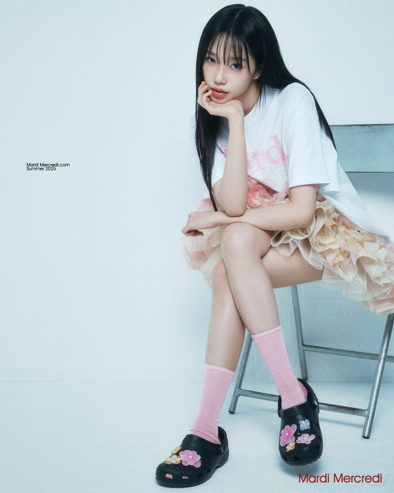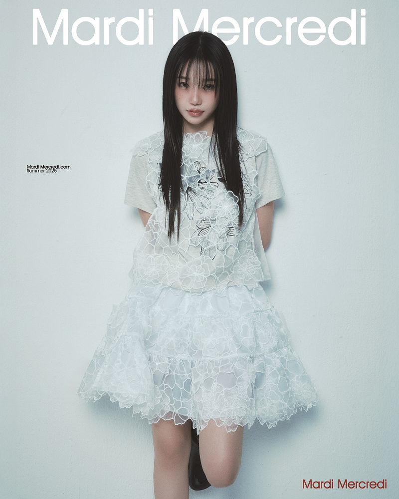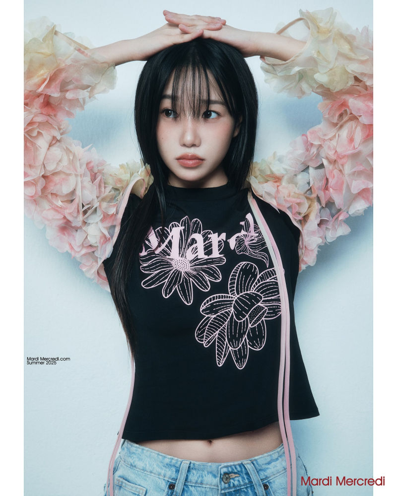 이번 화보는 마르디 메크르디의 시그니처 아이템인 ‘트리플 플라워’ 티셔츠를 중심으로 한 감각적인 스타일링과 조유리 특유의 순수하고 사랑스러운 이미지를 여과 없이 담아냈다. 특히, 쿠튀르 감성의 아플리케 컬렉션을 세련되게 매치시켜 더 몽환적이고 로맨틱한 스타일을 완성했다.