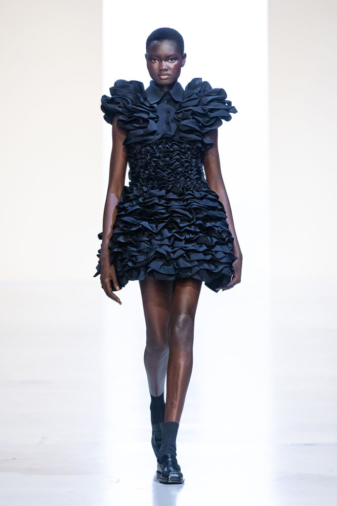준지는 이번 26SS 컬렉션의 주제를 ‘BOY-ISH(보이시)’로 정했다. 소년, 소녀의 옷 입기에 대한 실수들이 아주 특별하고 멋진 패션이 될 수 있다는 생각에서 출발했다.
