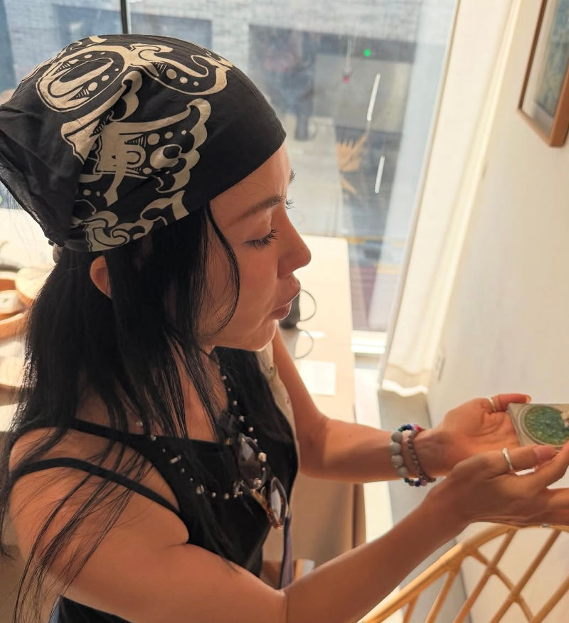 반다나처럼 머리에 묶은 스카프는 얼굴을 한층 작아 보이게 하면서, 힙한 스트리트 감성을 잘 살려줄 수 있다.
