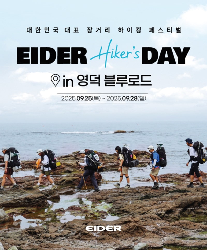 아웃도어 브랜드 아이더가 오는 9월 영덕 블루로드에서 열리는 대한민국 대표 장거리 하이킹 페스티벌 ‘아이더 하이커스데이(Hiker’s Day) 2025’ 참가자를 모집한다.