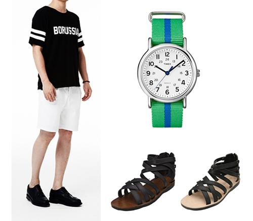 아울러 운동화보는 통풍이 잘되는 시크한 무드의 글레디에이터 샌들을 착용하면 남성다운 매력과 세련된 스타일을 연출할 수 있다. 한결 밝고 캐주얼한 분위기를 위해 시계는 캔버스 스트랩에 비비드한 컬러가 돋보이는 것이 좋다. 가죽이나 메탈 등 다른 소재의 시계보다 가볍고 산뜻한 착용감이 눈에 띄며 어떤 브레잇슬릿과도 잘어울려 포인트 액세서리로 활용하기 좋다.