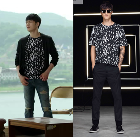 김재중과 프로 모델의 동일한 티셔츠는 독일 럭셔리 컨템포러리 브랜드 휴고(HUGO)의 제품으로, 슬림 핏을 기본으로 한 미니멀한 디자인이 특징이다. 가격은 21만원대.