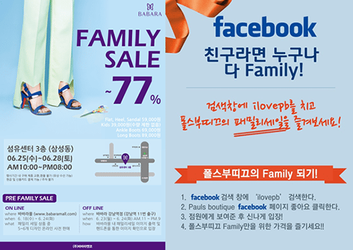 20140619 sale 2 2이와 함께 핸드메이드 슈즈 브랜드 바바라(BABARA)와 영국 디자이너 가방 브랜드 폴스부띠그(Paul’s Boutique)는 상반기 통큰 패밀리 세일을 실시한다.