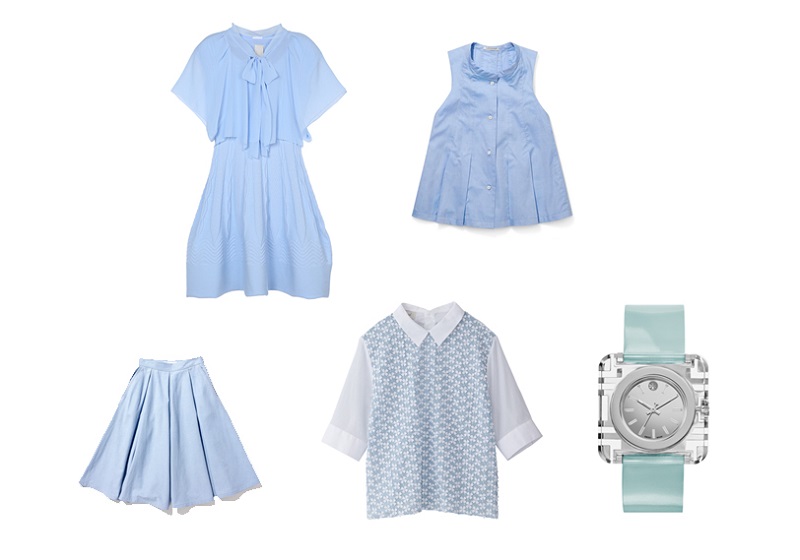 깨끗한 느낌으로 여름과 특히 잘 어울리는 아쿠아마린은 다양한 패션 아이템에서 손쉽게 찾아볼 수 있다. 패턴의 포인트 컬러는 물론 심플한 원피스와 드레이프 디테일까지 다양하게 활용되고 있다.