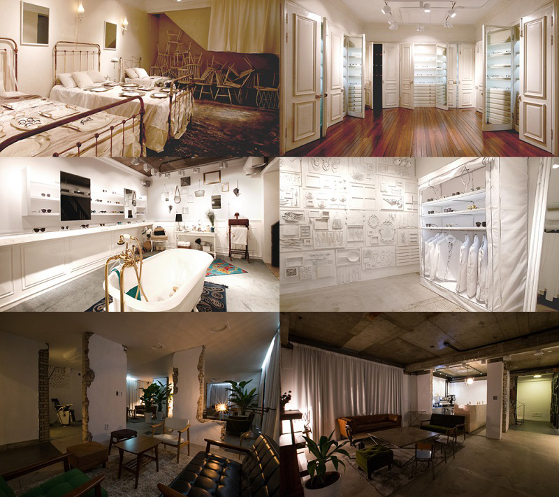 이번에 오픈한 쇼룸은 총 6층 건물로 약 100㎡(30평) 규모다. 지하 1층은 안경 컬렉션을 선보이는 공간으로 침실과 벽장을 활용해 안락한 분위기를 연출했다. 1층은 바버숍과 방직기, 2층은 화이트 오브제를 통해 다각적인 접근법을 선보였다. 3층은 고급스러운 욕실로 여성들의 로망을 담은 세세한 디테일을 엿볼 수 있으며, 4층과 5층은 라운지의 개념으로 낮은 조도와 편안한 소파를 배치해 치유의 공간으로 완성했다.