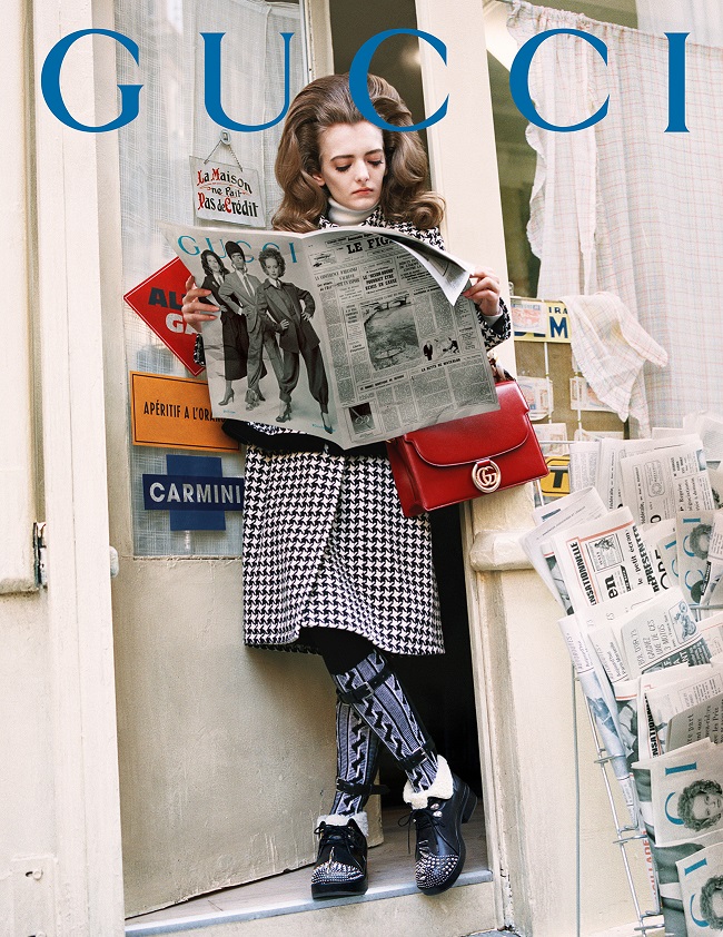 이번 구찌 2019 가을/겨울 컬렉션 광고 캠페인은 의상 제작의 실질적인 과정을 다시 한번 패션 담론의 중심에 놓고자 하는 알레산드로 미켈레의 디렉션 하에 제작되었다. 새로운 헴라인, 시즌 컬러, 패브릭 등으로 매거진 1 면을 장식했던 30년 전의 모습을 재현하듯, 이번 광고 캠페인은 레디-투-웨어 패션을 주인공으로 내세운다.