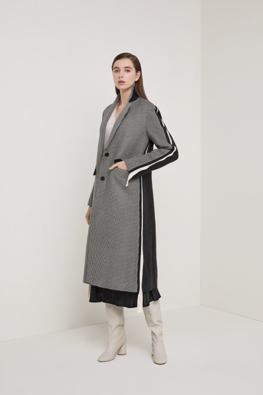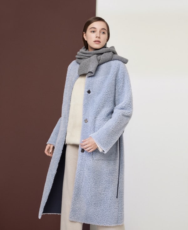 울 벨티드 코트는 울이 함유된 밀도 있는 고급스러운 원단으로 탄탄하게 잡히는 핏과 오랜 시즌 함께할 수 있는 세련된 디자인이 특징이다. 위로 살짝 올라가는 피크드 카라 디자인은 얼굴을 더욱 작아 보이게 하며, 전체적으로 슬림한 핏과 고급스러운 벨트 디테일로 FW 시즌 다양한 스타일링에 두루 활용할 수 있다. 기본 컬러인 네이비는 그레이 멜란지 원사와 네이비 원사가 트윌 조직 원단으로 제작되어 포근하고 따뜻한 느낌을 선사하며, 브라운체크와 그린체크의 경우 트렌디한 컬러를 조합한 하운드투스체크와 글렌체크를 믹스한 패턴으로 크기와 무늬의 형태를 여성스럽게 변형했다.