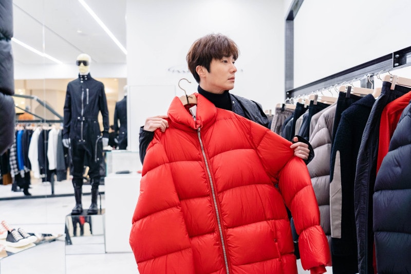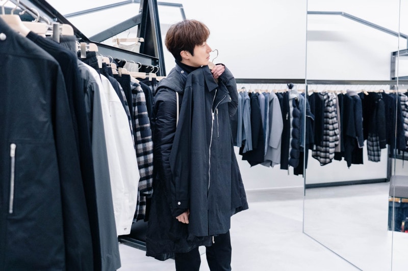 정일우가 방문한 현대백화점 판교점 릭오웬스 매장은 릭오웬스가 직접 디자인한 새로운 인테리어 컨셉인 ‘정글(jungle)’로 처음 선보인 매장으로, 구조적이면서도 가공 되지 않은 마감으로 릭오웬스의 미적 감각을 고스란히 느낄 수 있다.