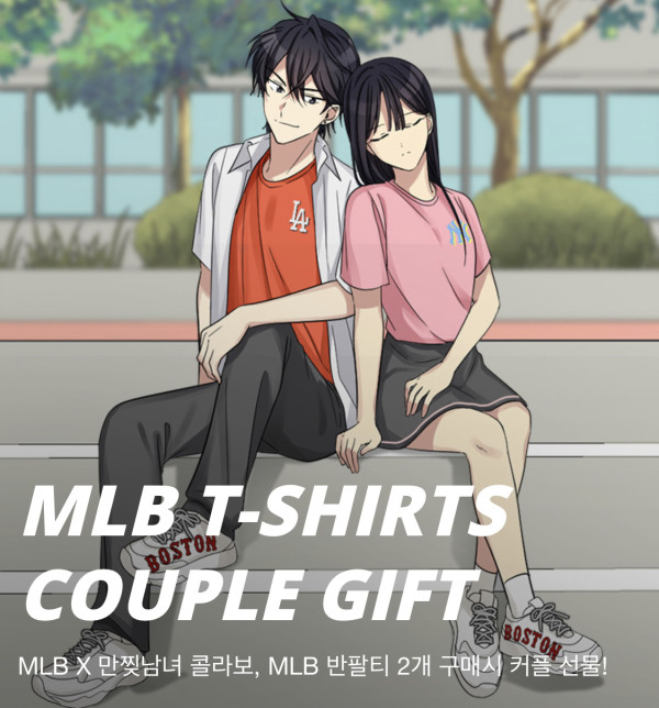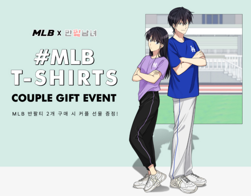 MLB는 만찢남녀와의 콜라보레이션을 기념해 ‘MLB 티셔츠 커플 기프트 프로모션’을 진행 중이다. 웹툰에 등장한 MLB 반팔티 또는 빅볼청키를 2개 구매하는 고객에게 스타벅스 아메리카노 2잔을 선착순 100명에게 증정한다.